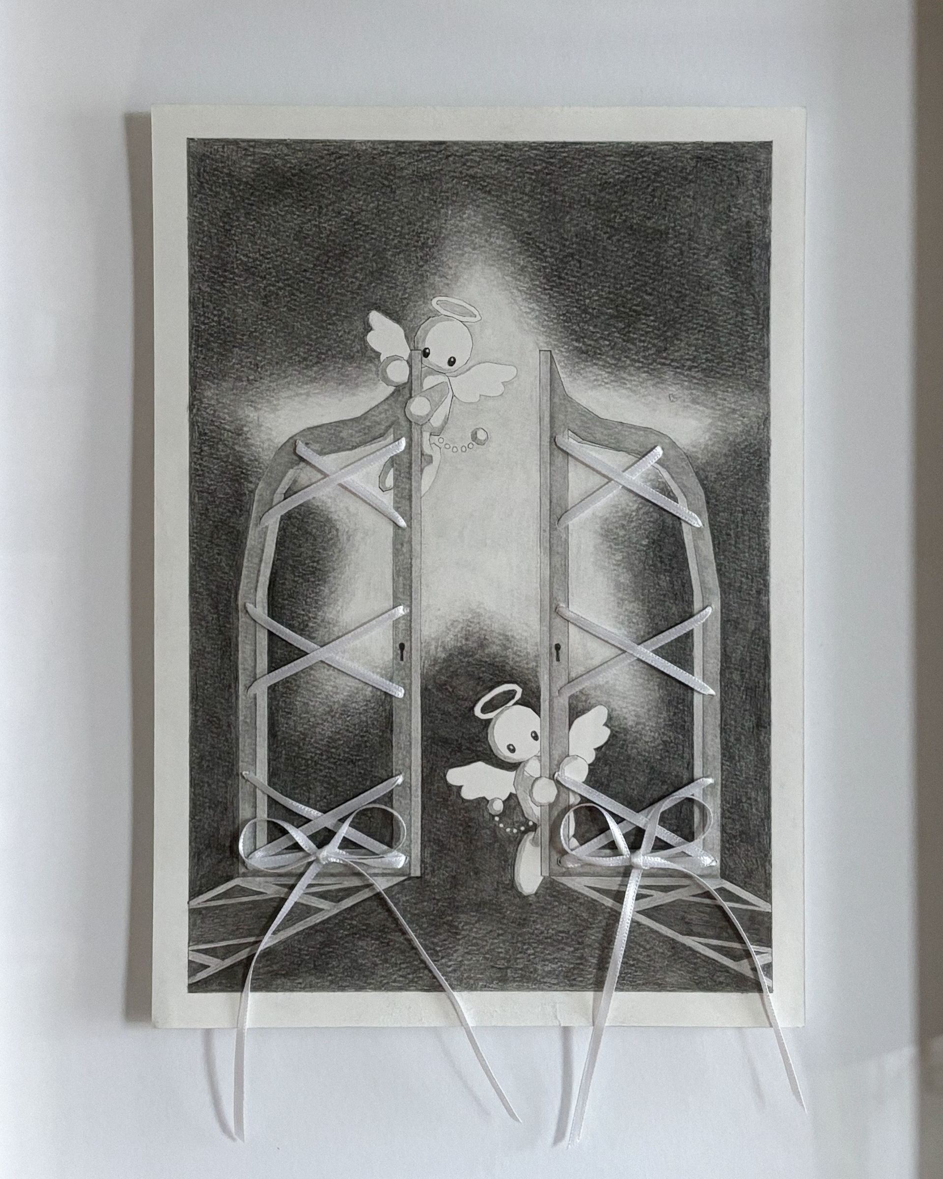 graphite on heavyweight paper, ribbon lacing
